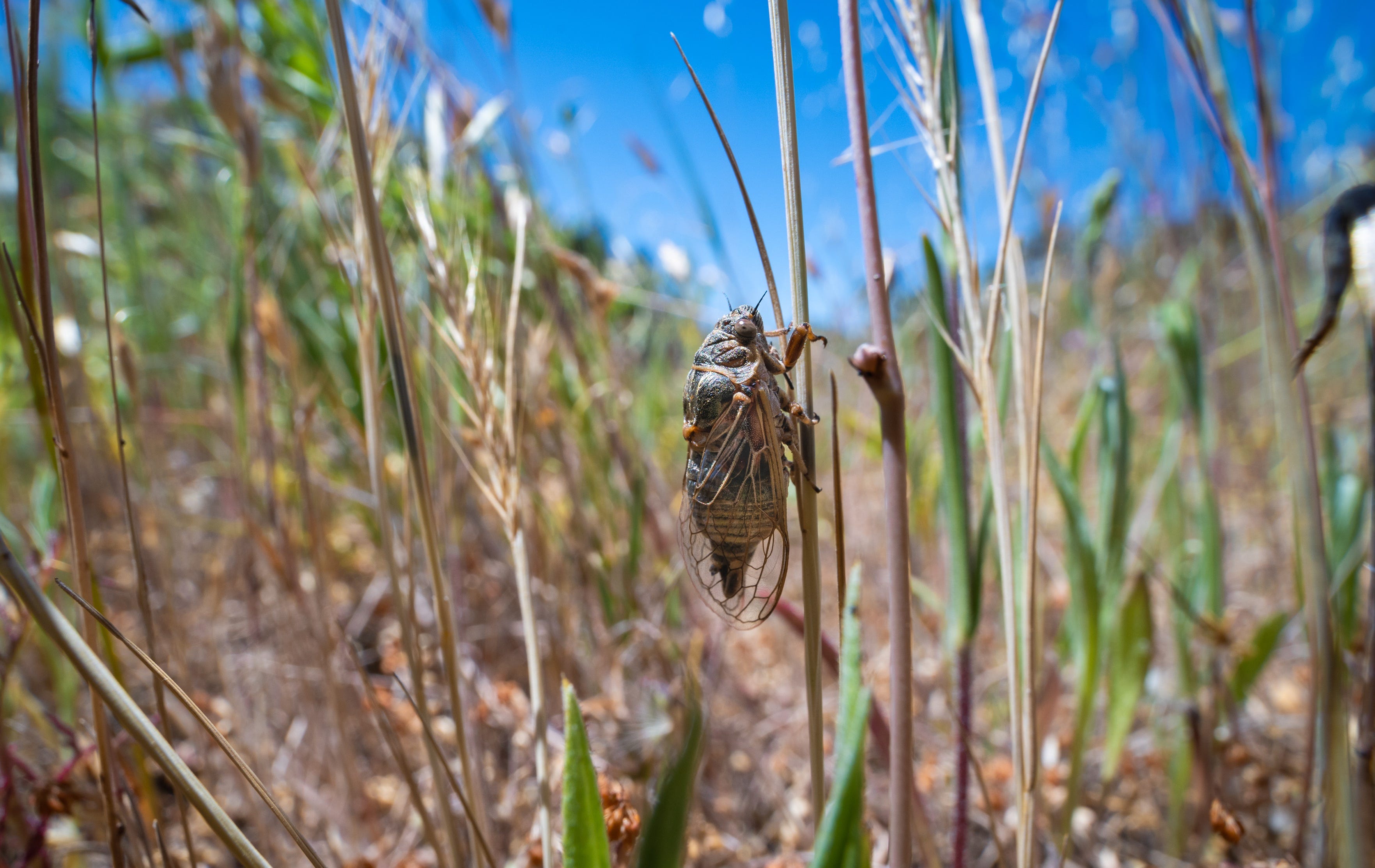 Tibicinoides minuta on a stalk of grass. Credit: Elliott Smeds
